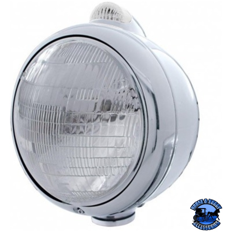 CHROME GUIDE 682-C STYLE HEADLIGHT 6014 & LED TURN SIGNAL – CLEAR LENS #31538