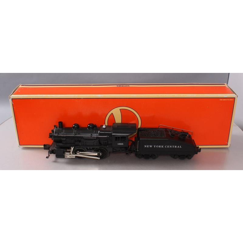 Here is a Lionel 6-18054 O New York Central 0-4-0 Steam Locomotive & Tender #1665. This engine features die-cast construction, a powerful DC motor, a decorative bell, smoke, an operating headlight, an operating knuckle coupler, metal side rods, and metal wheels. The tender body is plastic, and it features die-cast trucks, an operating coupler on the rear, and a backup light. Please see my pictures for additional features.