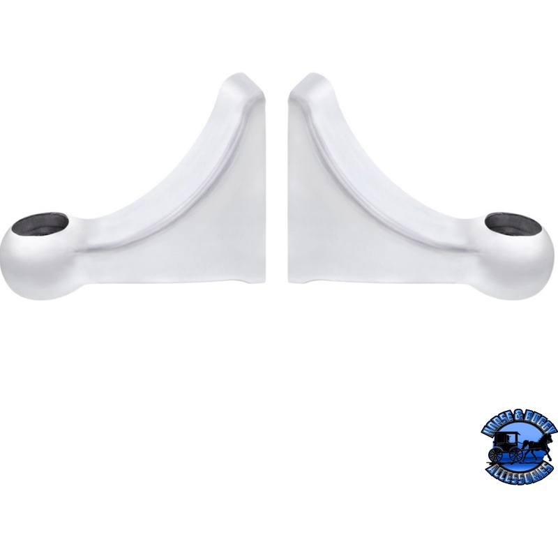 Beautiful polished aluminum finish.Has internal pre-drilled passages to route headlight wiring through.Mounting hole pattern fits 2006 and older Peterbilt.Brackets only, screws not included.Sold in pairs.