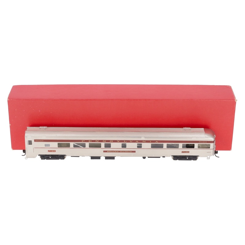 Here is a S. Soho & Co. 1808 HO Scale BRASS PRR #7126 Parlor-Telephone-Observation Car. This car features nickel plated brass construction, knuckle couplers, and metal wheels. Please see my pictures for additional features.