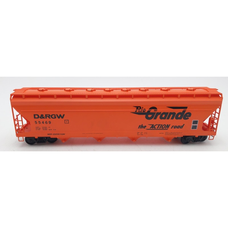 Here is a Weaver 1507 O Scale D&RGW Hopper Car #55469 (2-Rail). This car features plastic trucks, O scale Kadee couplers, and plastic 2-rail wheels.