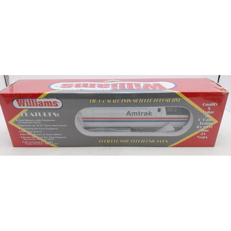 Here is a Williams 98520 Amtrak FP-45 Powered Diesel Locomotive #520. This locomotive features a die cast frame, die cast trucks, dual motors, electronic horn, operating knuckle couplers, operating headlamp, and metal 3-rail wheels.